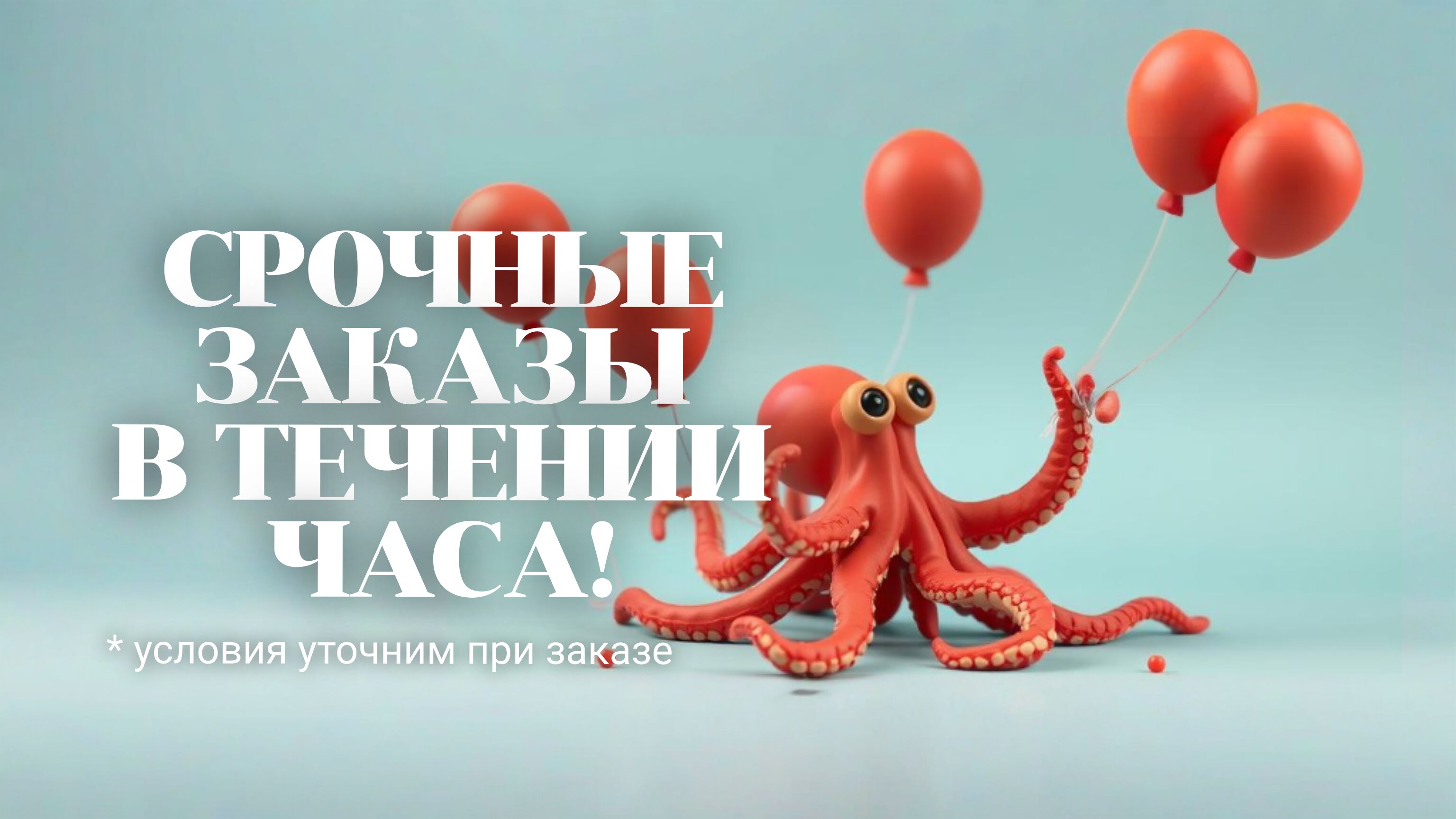 - • Огромный ассортимент: Все виды шаров (латексные, фольгированные, гелевые, цифры, фигуры).